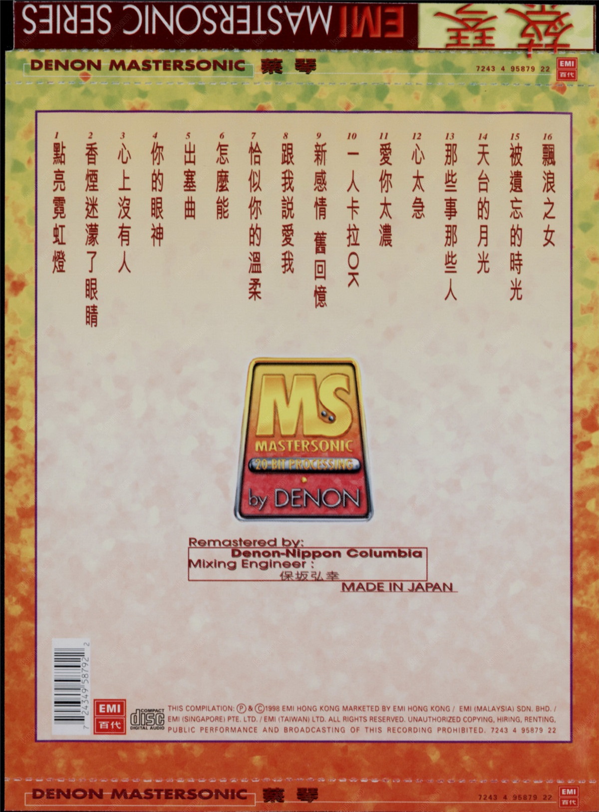 蔡琴1998-DENON MASTERSONIC[日本天龙2MM1版][WAV整轨]