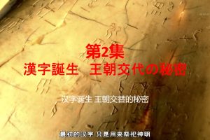 距今约三千年前,“商朝”而发明了最古老的汉字“甲骨文”。那是一种与所有当今表音文字使用方法都截然不同的文字。在商朝,人们将祈雨和战争时期,通过在布满裂纹的甲壳和骨板上刻写各种各样的字符进行占卜。汉字最初是在占卜中与神进行对话所使用的文字。但随着适用场合戏剧性的发生改变,汉字不为人知地发挥出它的力量。转捩点是远古一场决定天下归属的最大决战。在对“殷商”的战争中取得胜利的新王朝“周”,在多部族之间的“盟约”使用汉字,是这一变革的开端。语言不同的诸部落也能使用的相同表意的文字——汉字,在这一瞬间开始扩散。不久,在大陆范围内,有着不同语言和文化的人们,逐渐形成了拥有同一种汉字的文化圈。