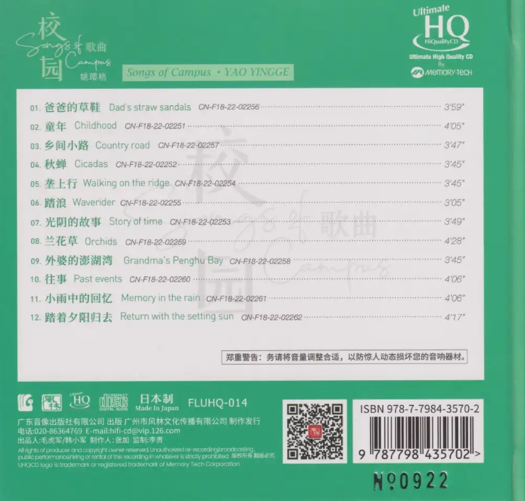 姚璎格《校园歌曲》头版限量编号UHQ [WAV+CUE]