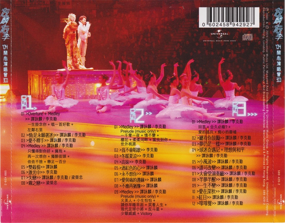 谭咏麟&李克勤2004 – 左麟右李04开心演唱会 3CD(2024环球红馆40复刻系列)[环球][WAV+CUE]