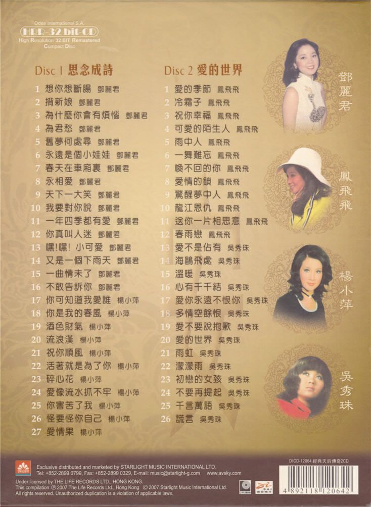 群星2007 – 天后传奇 2CD 思念成诗&爱的世界[迪安][WAV+CUE]