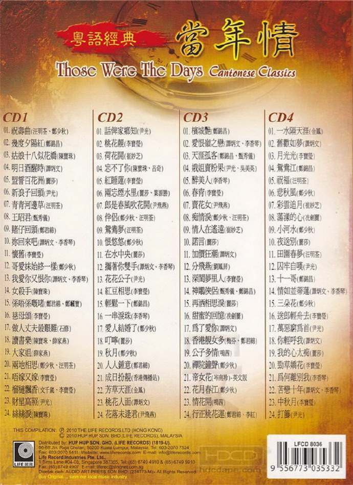 群星2010-当年情·粤语经典4CD[丽风][WAV+CUE]
