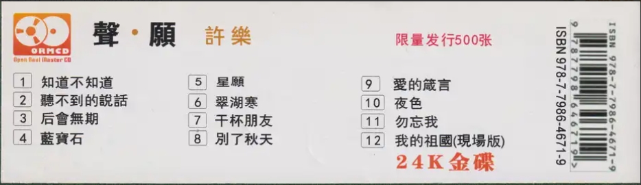 许乐2024 -《声愿》限量开盘母带ORMCD柏菲[WAV+CUE]